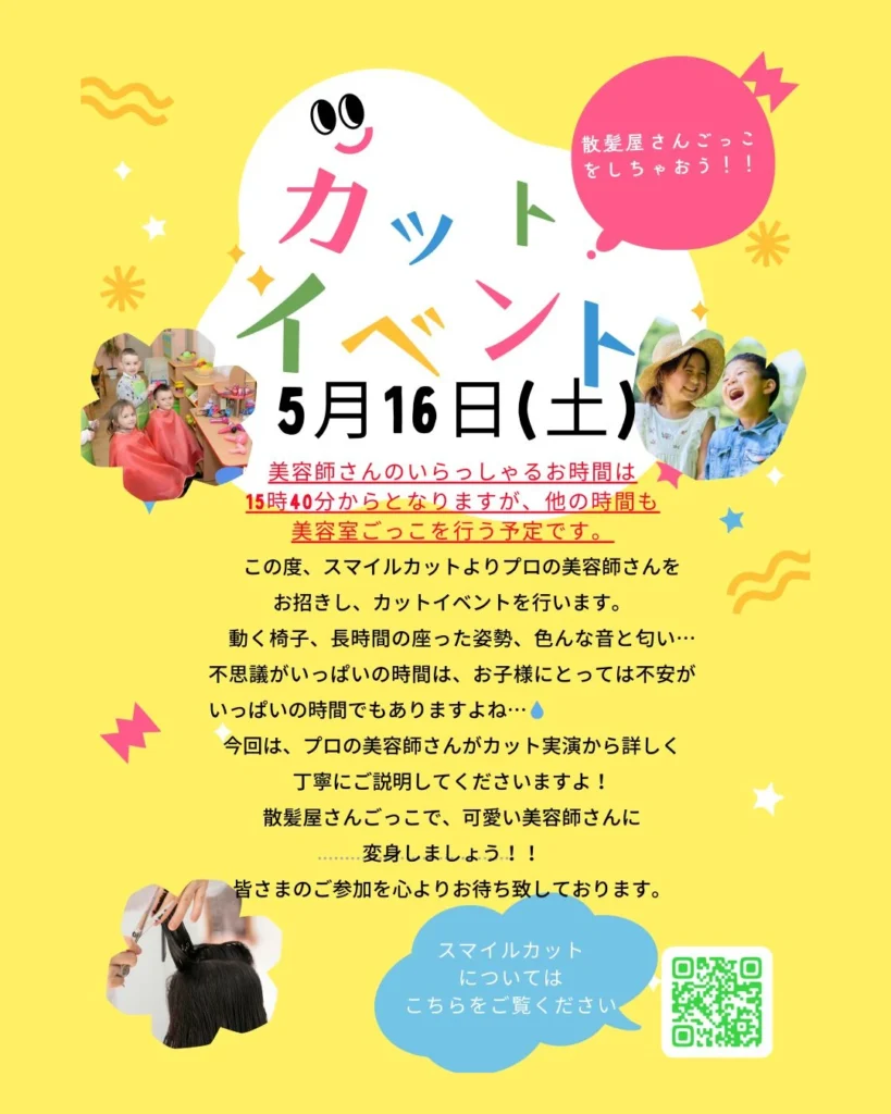 【コペルプラス垂水教室】様でのスマイルカット関連イベントの日程が決まり、ステキなチラシを作成していただきました。