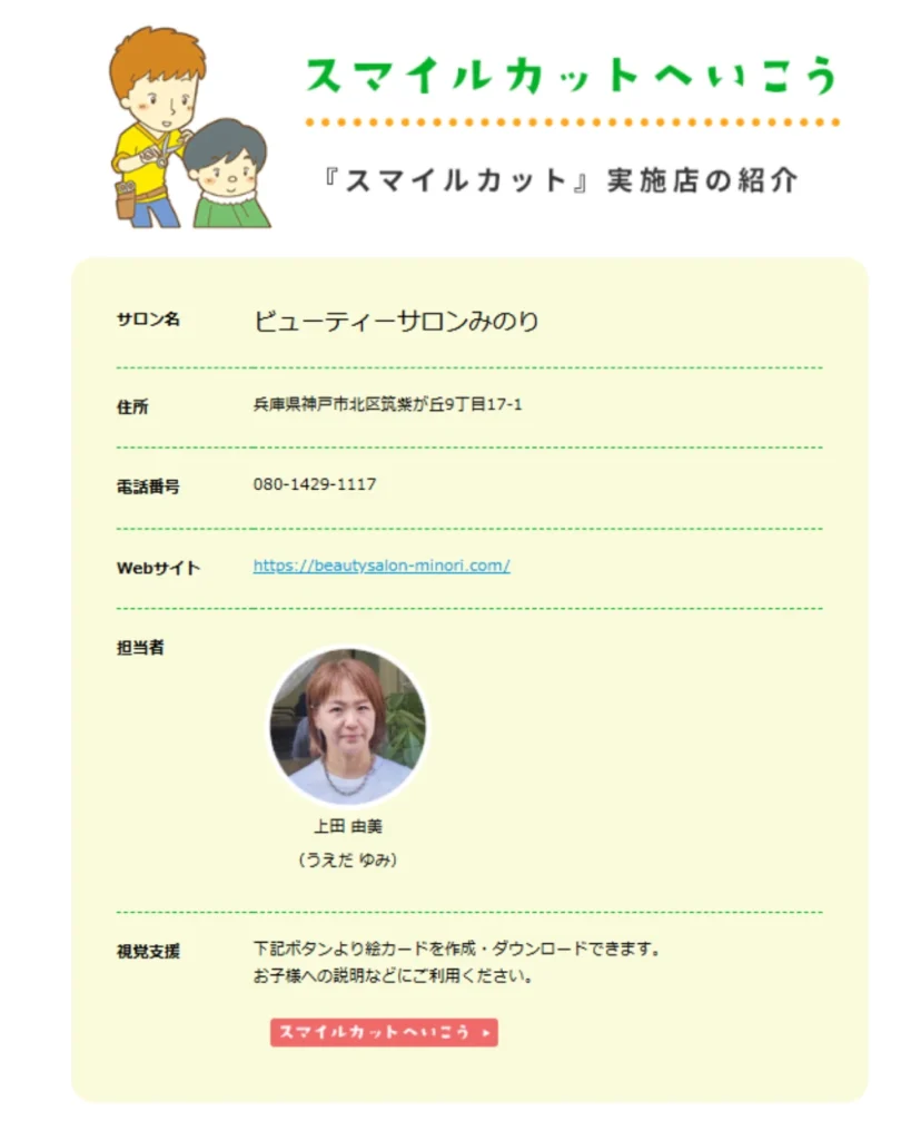 お問い合わせの内容としては、ご利用者様の保護者様からヘアカットに関する相談が複数あり、【スマイルカット】と【ビューティーサロンみのり】について紹介しても良いかというご丁寧なお問い合わせでした。